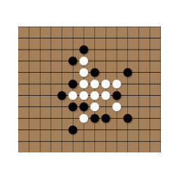 行棋:黑子先行,一人轮流一著下于棋盘空点处。